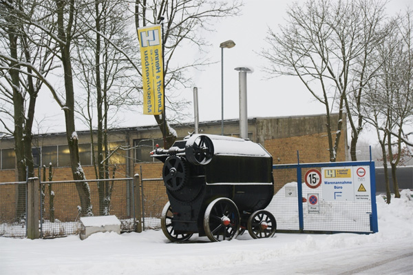 Kocioł do produkcji asfaltu lanego z końca XIX wieku